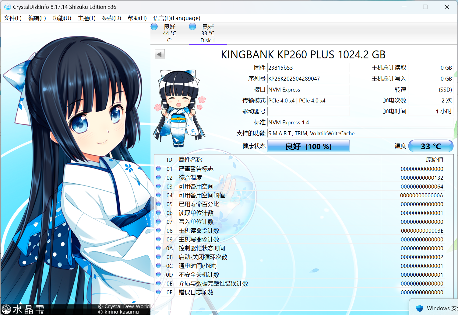 固态我额外增加了一块金百达KP260 PLUS 1T作为游戏盘,当然如果你直接用作系统盘也是没什么问题的。