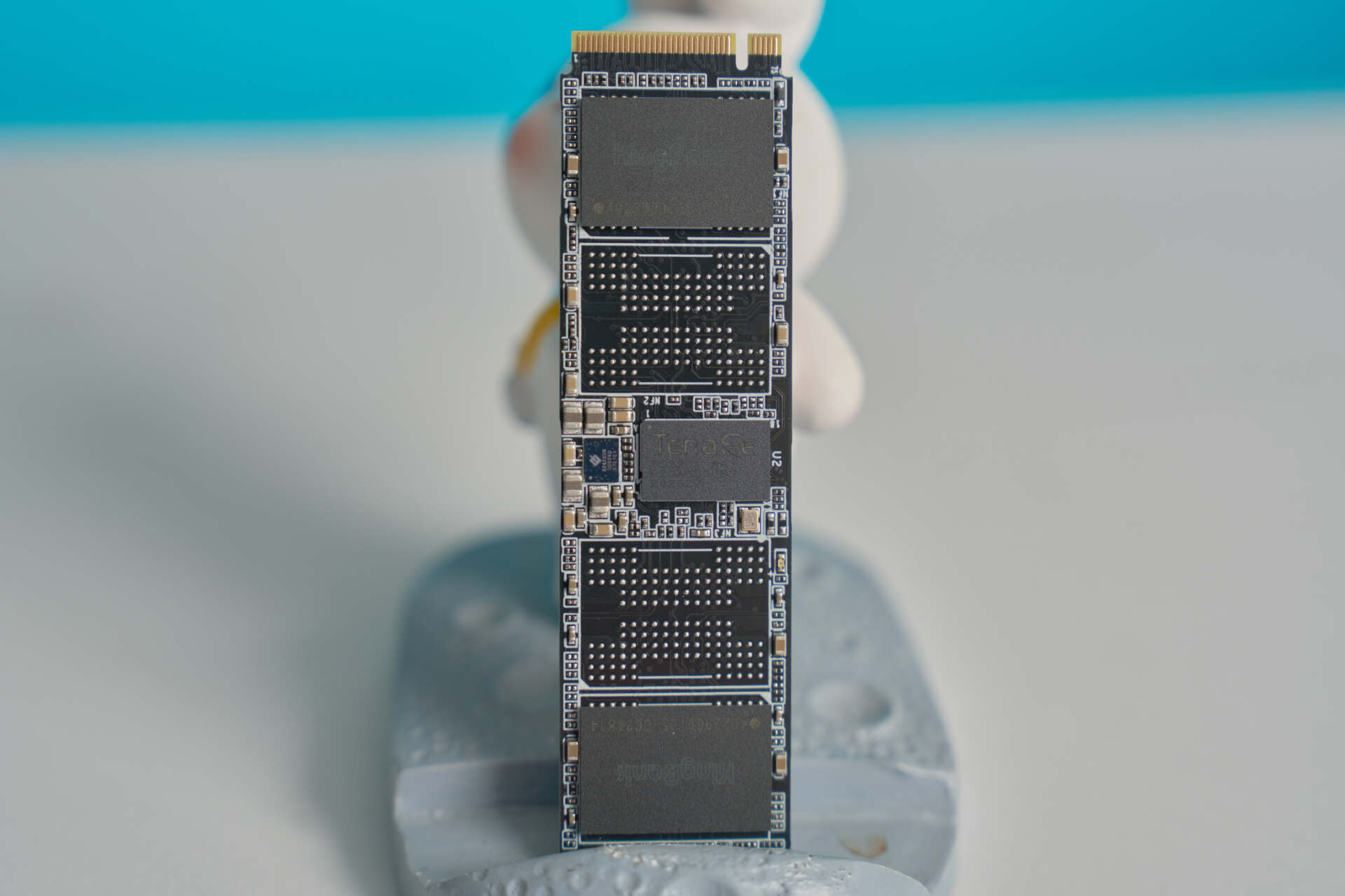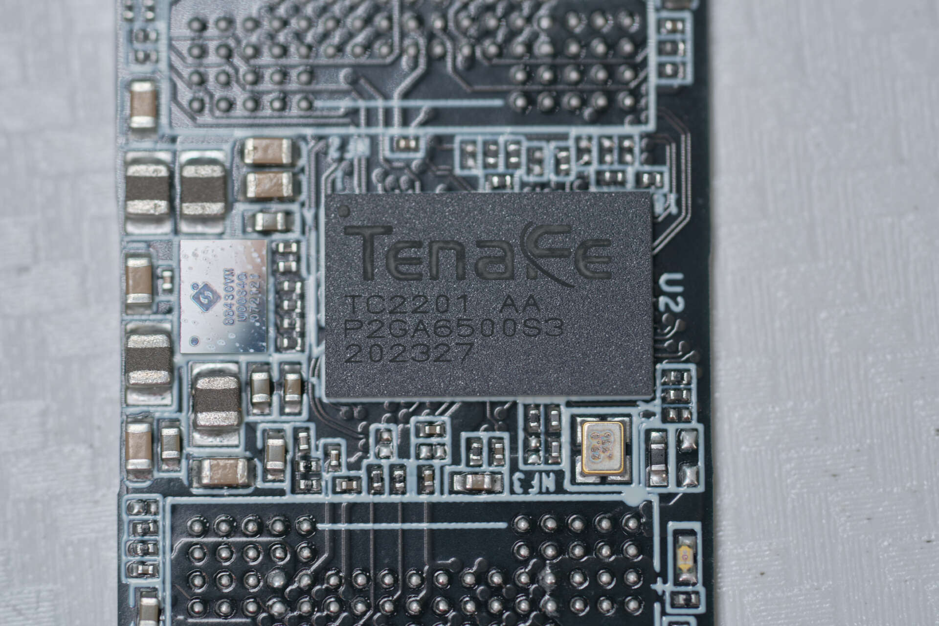主控为特纳飞的TC2201,采用台积电 6nm EUV 工艺,是专为 DRAMLess无缓存 SS打造的四通道主控,顺序读取速度最高可达 7.4GB/s,顺序写入速度最高可达 7.3GB/s,随机性能最高可达 1M IOPS。