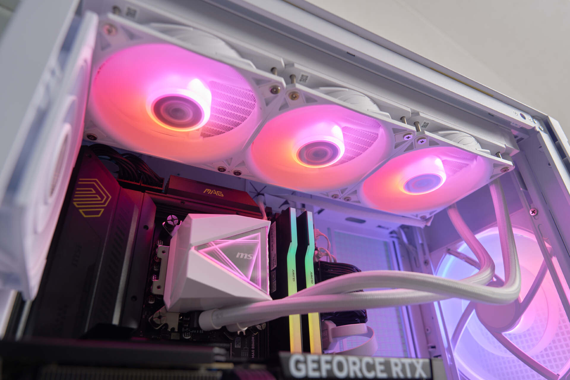 整体的RGB效果也是非常不错的,MAG CORELIQUID I360 WHITE水冷也是非常的搭,OK我们进入测试环节。