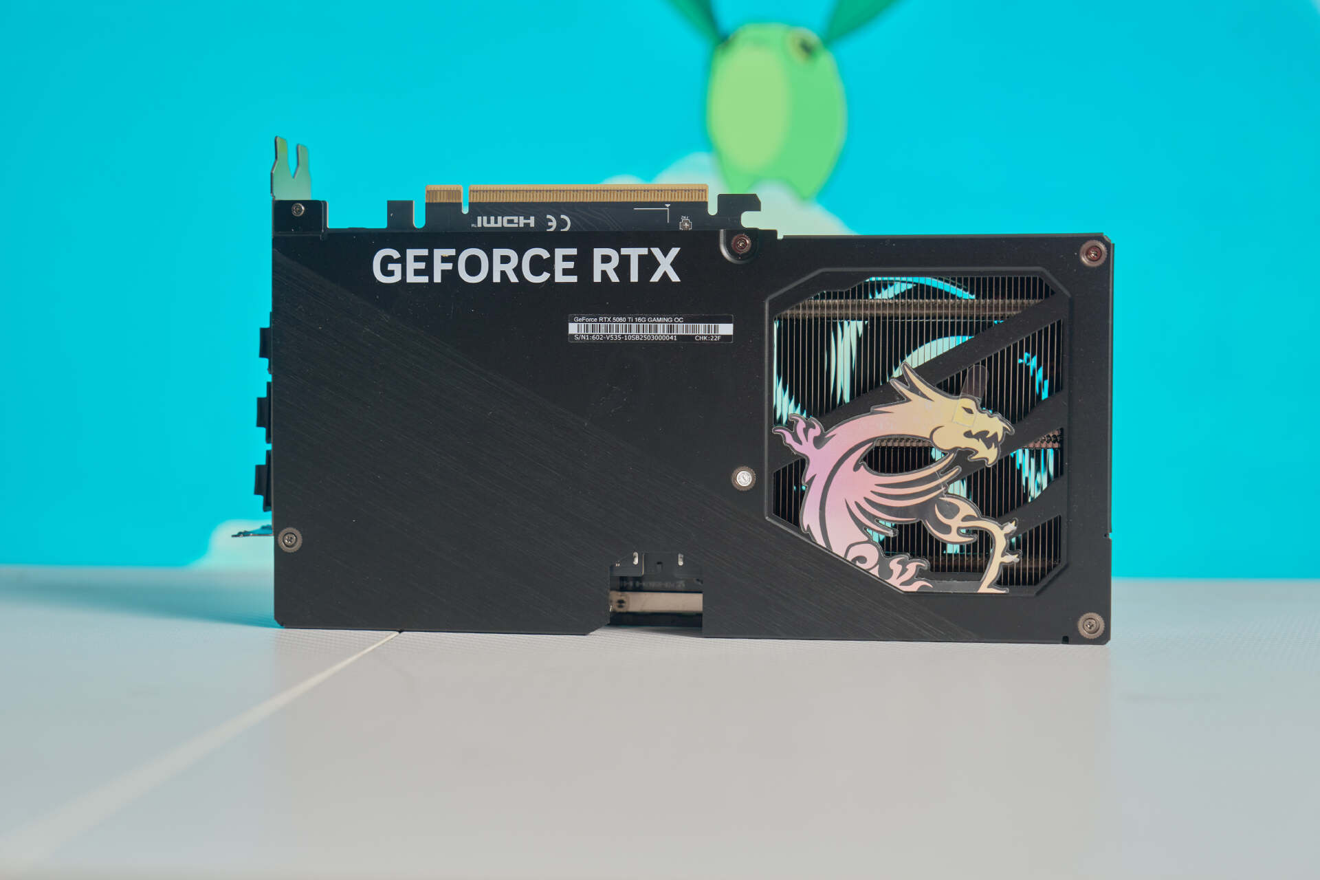 5060TI魔龙相较于40系在背面增加了一个镂空镭射魔龙logo,让颜值增加了不少。
