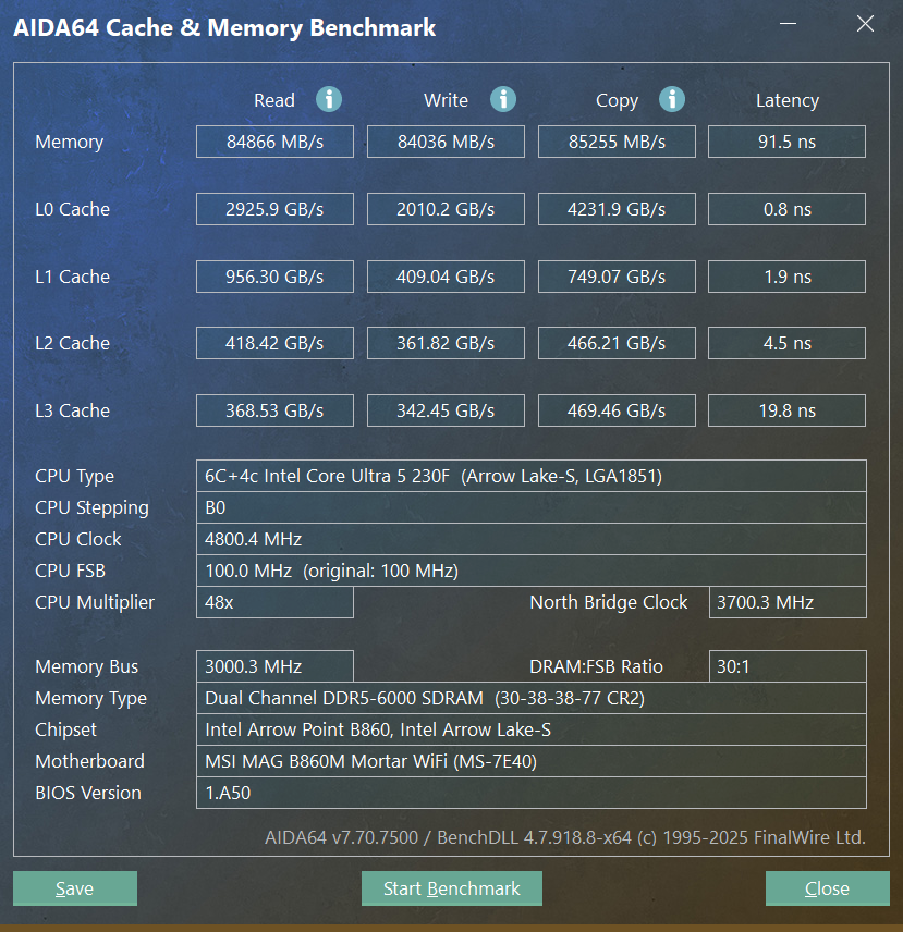 CPU就是这颗酷睿Ultra 5 230F这颗U了,这颗是中国特供的小黑盒系列的延续,上市的时候价格不是很好,不过现在1100元左右的价格是真香。