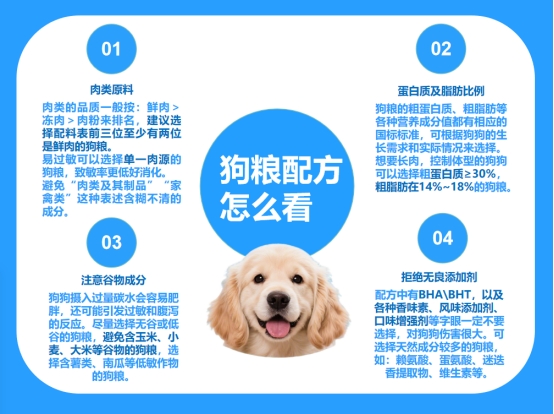 狗粮的营养供给主要来源于粗蛋白和粗脂肪,不能只看单一数据,还得看来源是否优质。
