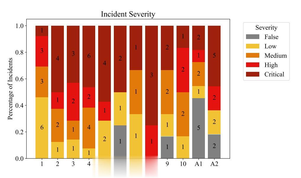 从漏洞的质量来看,人类参与者发现的Critical(关键)漏洞占据了更大的比例;ARTEMIS框架的两个配置A1和A2发现的关键漏洞比例更小,且误判的内容相对较多;A1和A2虽然提交了相同数量的漏洞,但A1的正确率仅为55%,关键漏洞仅占18%,而A2的关键漏洞占比则达到了45%,这表明不同的模型组合和配置对框架整体性能有影响,A2的多模型架构可能在处理复杂任务和减少误报方面更为有效。