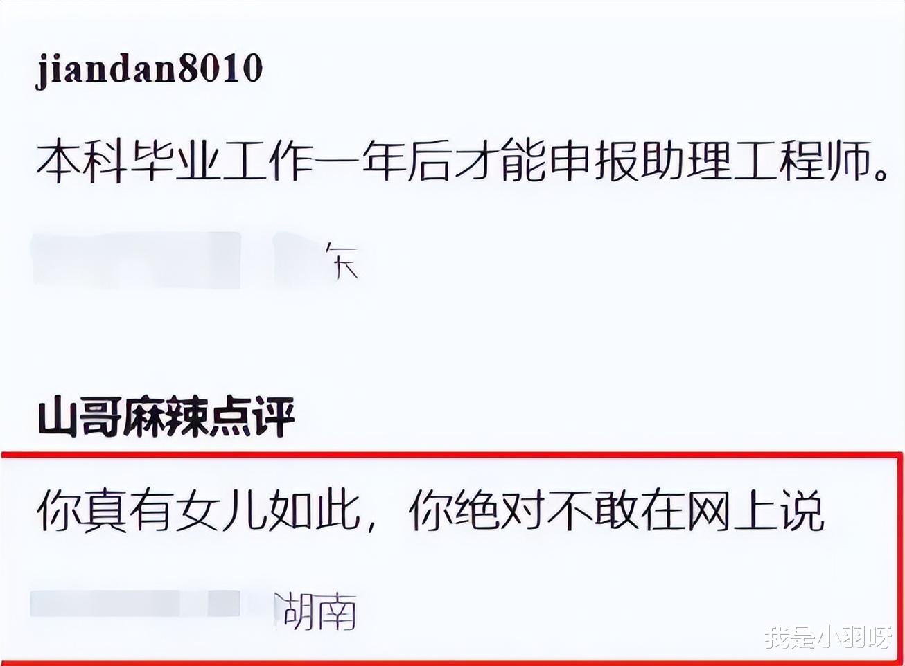 甚至有自称电网 HR 的人出来说:“这情况要么是你吹牛逼,要么是你女儿走了不该走的捷径,现在纪检都盯着这种事,举报一个准一个!”