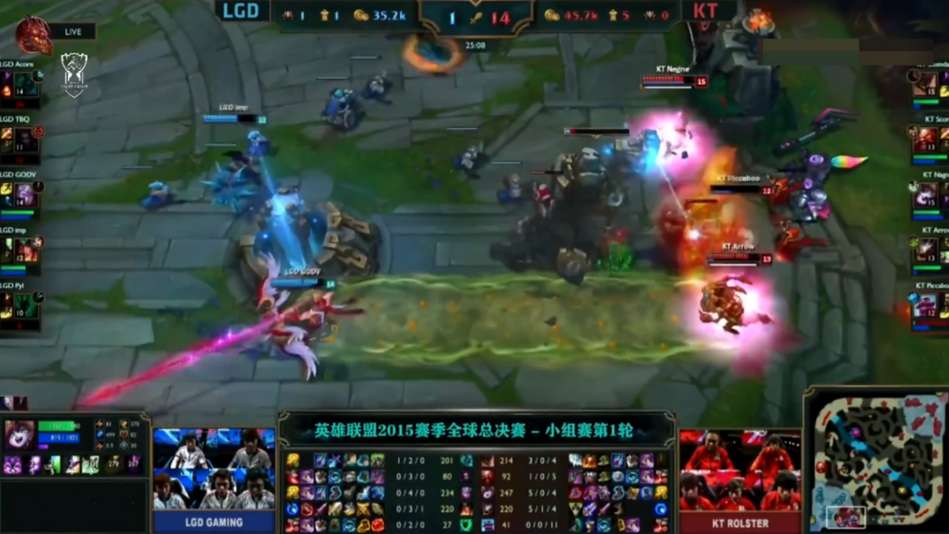 而这一切,都要从S5总决赛的小组赛说起,当时的LGD对阵来自LCK赛区的KT战队,当时LGD在经济全面落后,大势已去的情况下,被迫退守到下路高地附近,韦神所使用的维鲁斯在面对对方辅助布隆的情况下,射出了那致命的反向一箭,那反向的一Q直接让LPL赛区的观众从此多出了一个‘乐观家族’