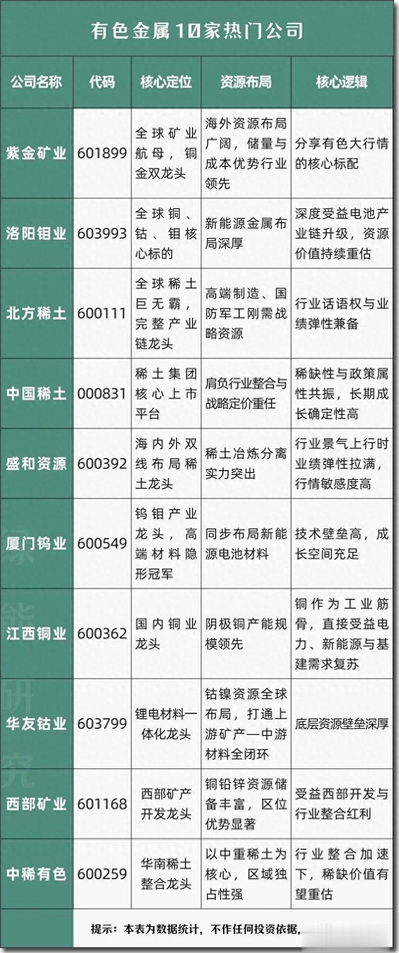 有色金属10家热门公司 有色金属产业链代表企业一览