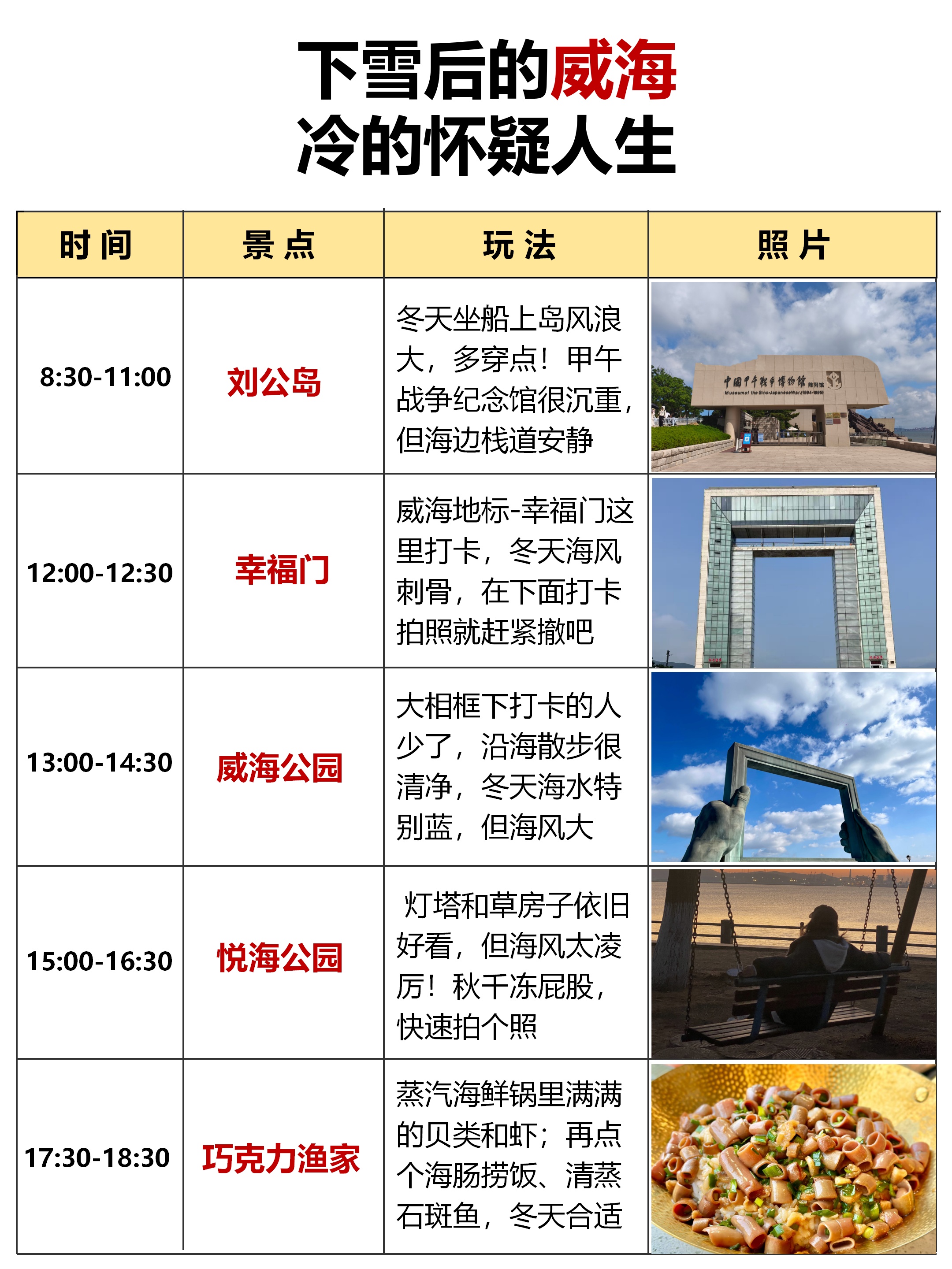 刘公岛、鸡鸣岛等岛屿,冬天航班极不稳定。计划去之前,一定要提前一天,查看景区官方公告或打电话确认是否开航,避免白跑一趟