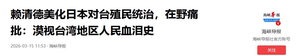就在郑丽文确定访陆刚过两天,赖清德又来了一波让人目瞪口呆的“历史新解读”。3月14日,他公然在讲话中美化日本殖民台湾的历史。
