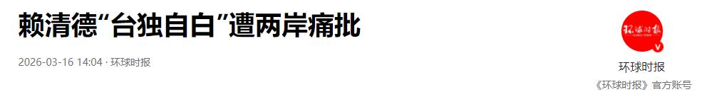 参考资料:《赖清德“台独自白”遭两岸痛批》——环球时报