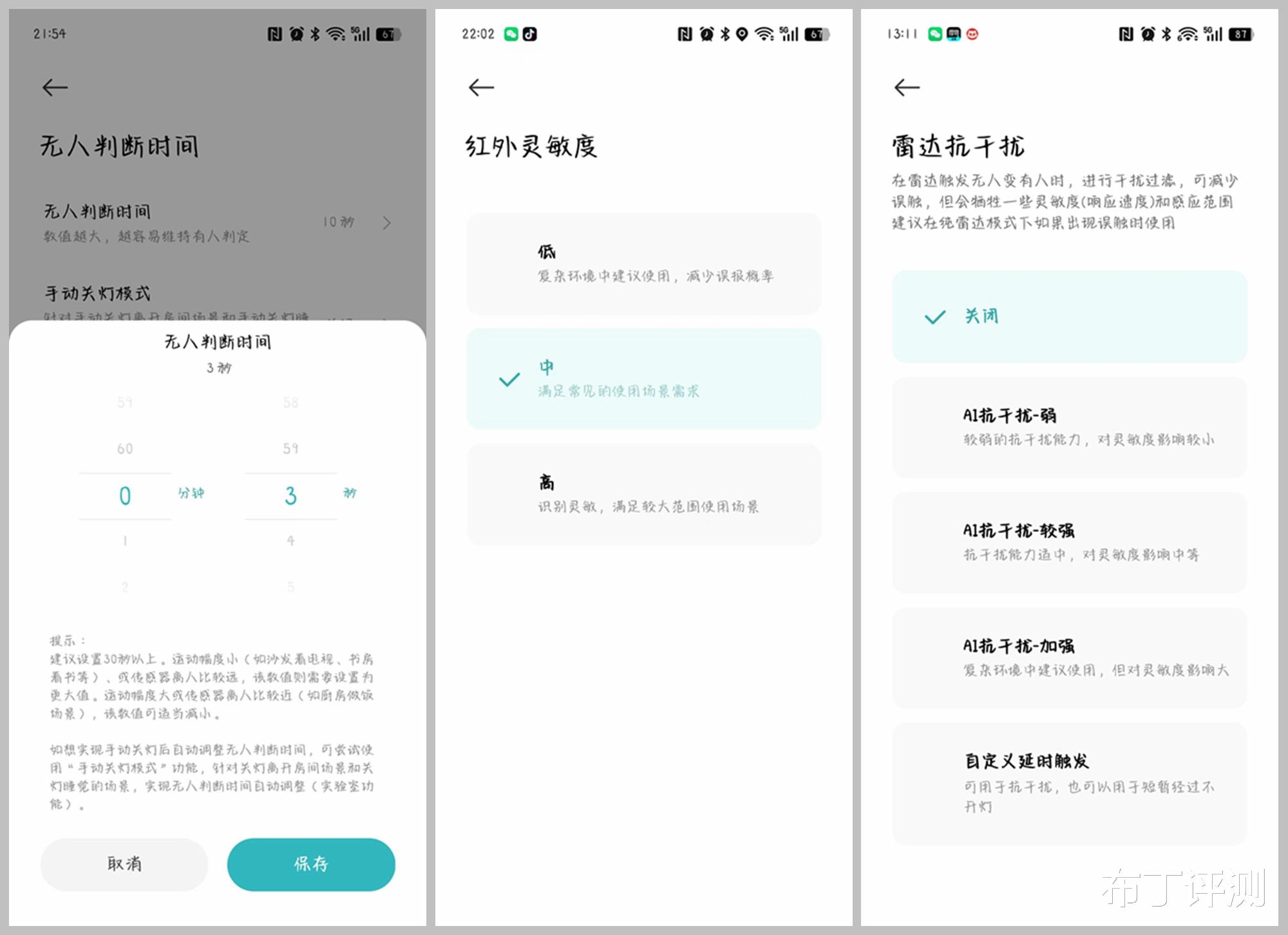 领普ES5的探测速度更快,支持最短3秒无人判定时间,能够带来更快速的快关灯体验。另外还能对红外灵敏度、雷达抗干扰进行相应的设置,方便用户根据需要快速调节。