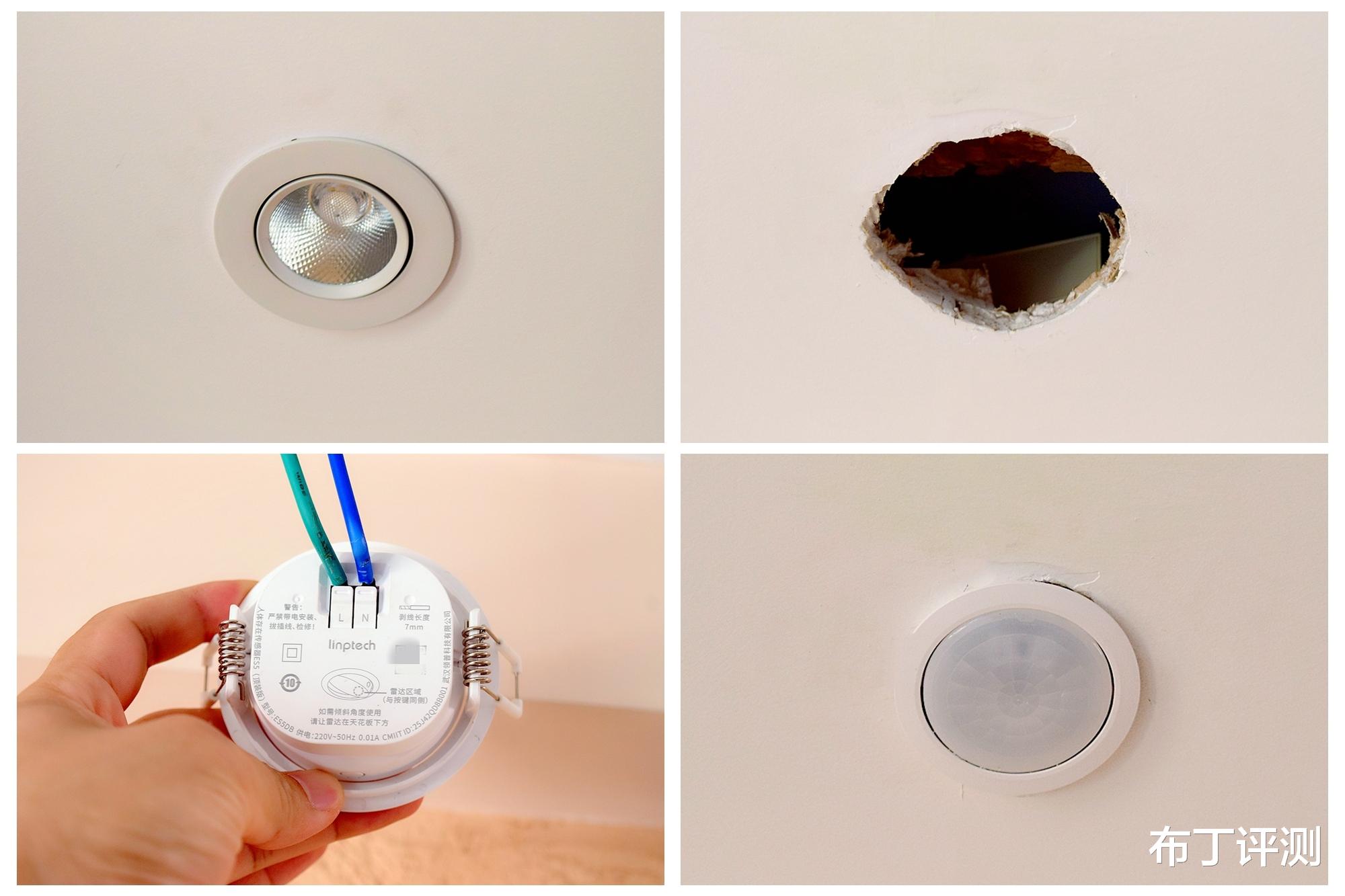 领普ES5的安装方法很简单,由于采用顶装设计,需要预留75mm开孔,正好和家中射灯相同,这里就直接替换射灯进行测试,根据提示将线插入接口即可。不过注意最好接入不经过开关的家庭220V电线,让传感器保持在线状态。