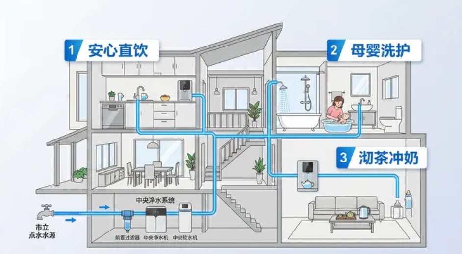 自从家里装上虎鲸妈妈全屋无菌水净水机,宝宝直接喝水再没闹过肚子!连肠胃敏感的老人家也夸水质柔和,咕咚咕咚喝得超放心,全家喝水自由,原来这么简单!