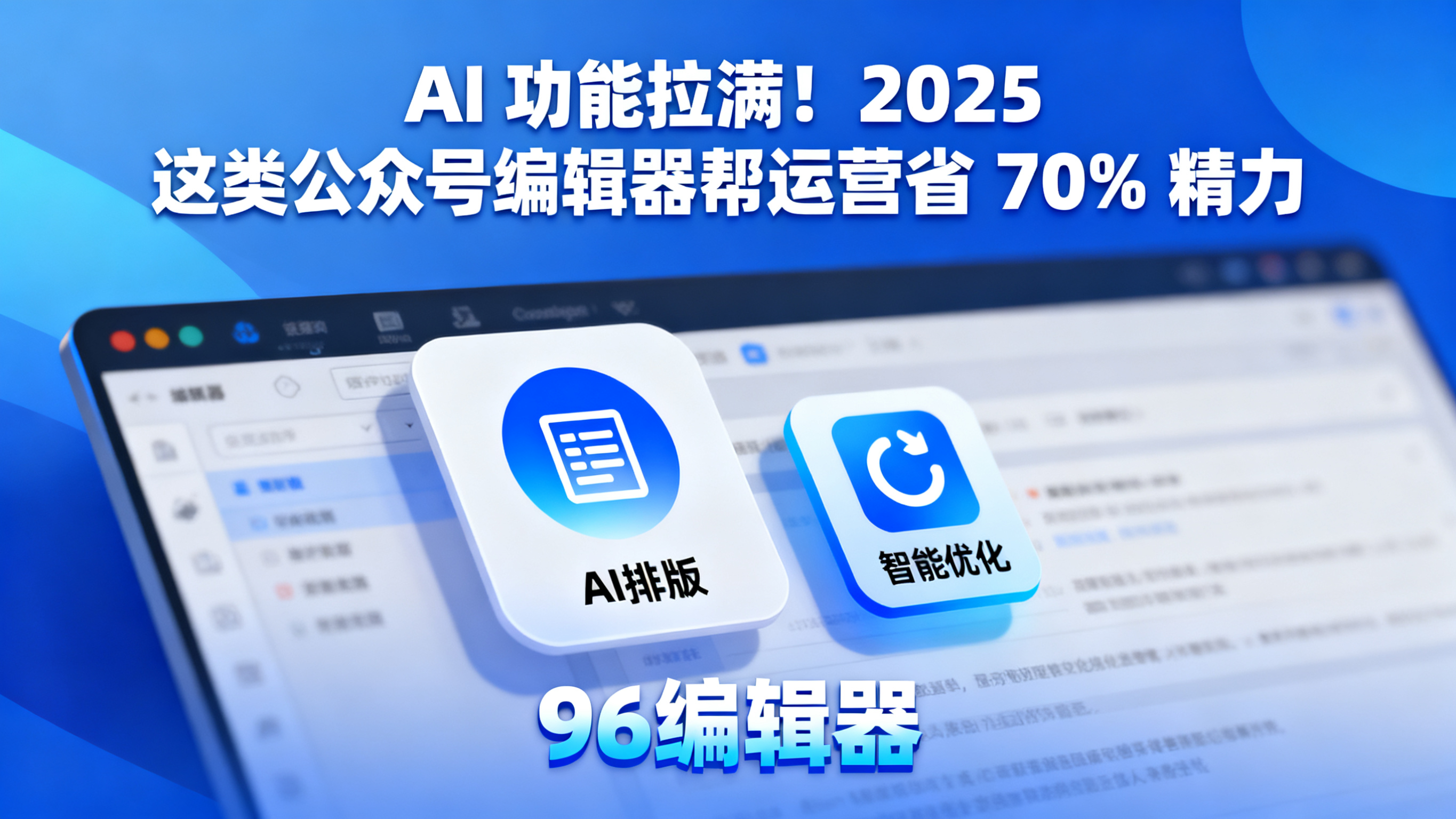 2025 公众号排版的核心是 “AI 提效 + 全场景适配”,96 编辑器免费版就实现了 AI 功能拉满 + 素材充足 + 体验流畅,帮运营摆脱重复劳动。无论是新手想快速上手,还是资深运营想提升效率,它都是省心之选。网页搜索 “96 编辑器”,绑定公众号即可免费试用,3 分钟就能体验 AI 排版的高效便捷。