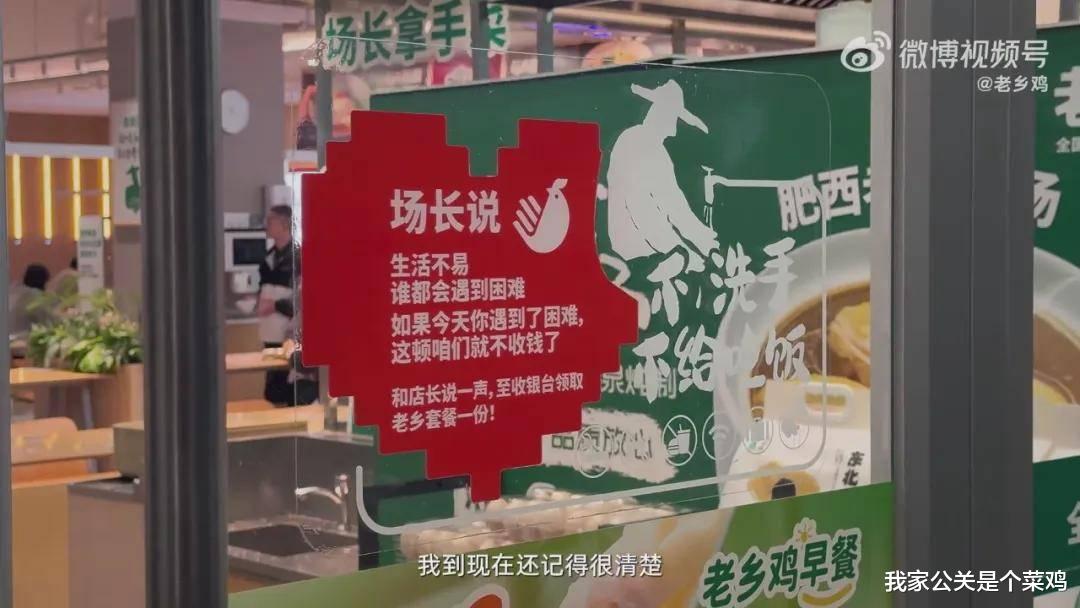 比如插入老乡鸡创始人线下视察门店时的讲话,如果病患吃不起,就不要收他们的钱。