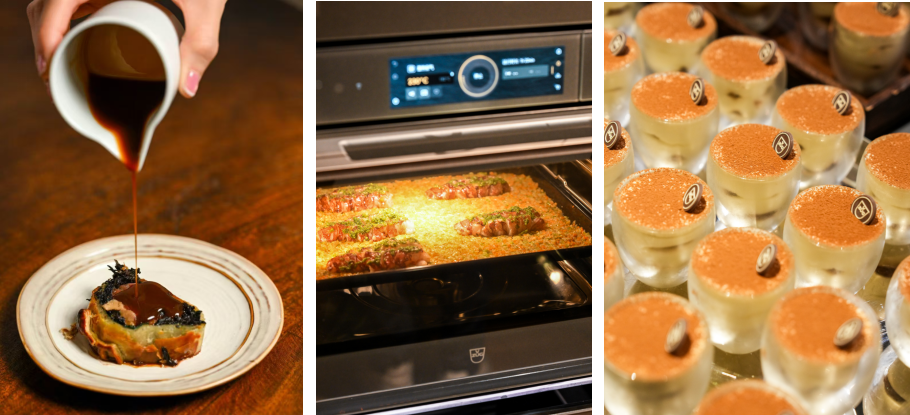 在这场实验中,精密的科技隐于体验之后,却成为所有灵感创作得以成立的基石。赵胤胤凭借瑞族设备的精准温控与探针技术,无需反复尝试便能锁定罗西尼牛排理想熟度;仅需3分钟,蒜香红胡椒烤龙虾便能达到最佳嫩度。瑞族Supreme冰箱以恒温恒湿技术与超大容量空间,默默守护着可供80人自由取用的提拉米苏盛宴。