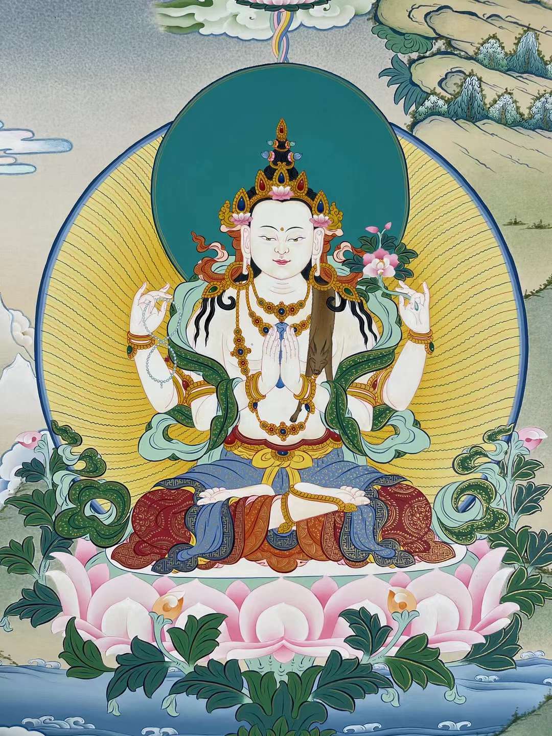 接下来请朋友们欣赏一组沃唐卡编号为171-873625的四臂观音唐卡: