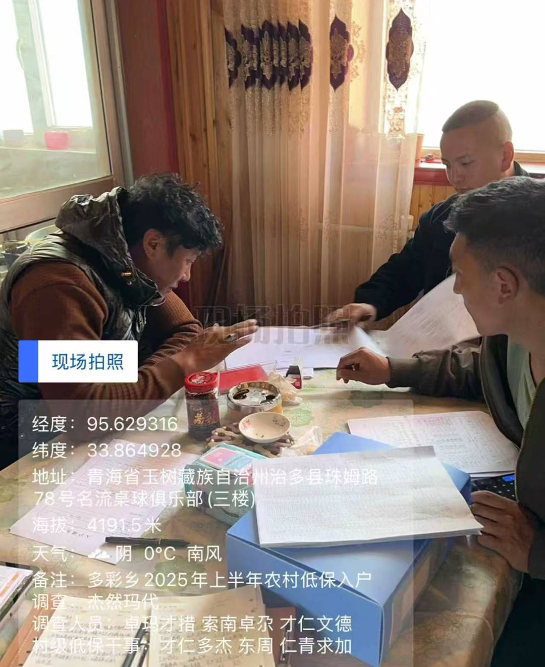 核查过程中,工作人员通过与杰然玛代夫妇面对面沟通、查阅户口登记簿、走访周边村民了解实际抚养情况等方式,确认其孙子户口确实登记在杰然玛代名下,且自出生后一直由杰然玛代夫妇实际抚养,孩子因疾病产生的医疗支出已对家庭造成较大压力,符合低保政策中“户籍在本地、家庭收入低于当地低保标准、家庭财产符合规定、存在特殊困难”的纳入条件。