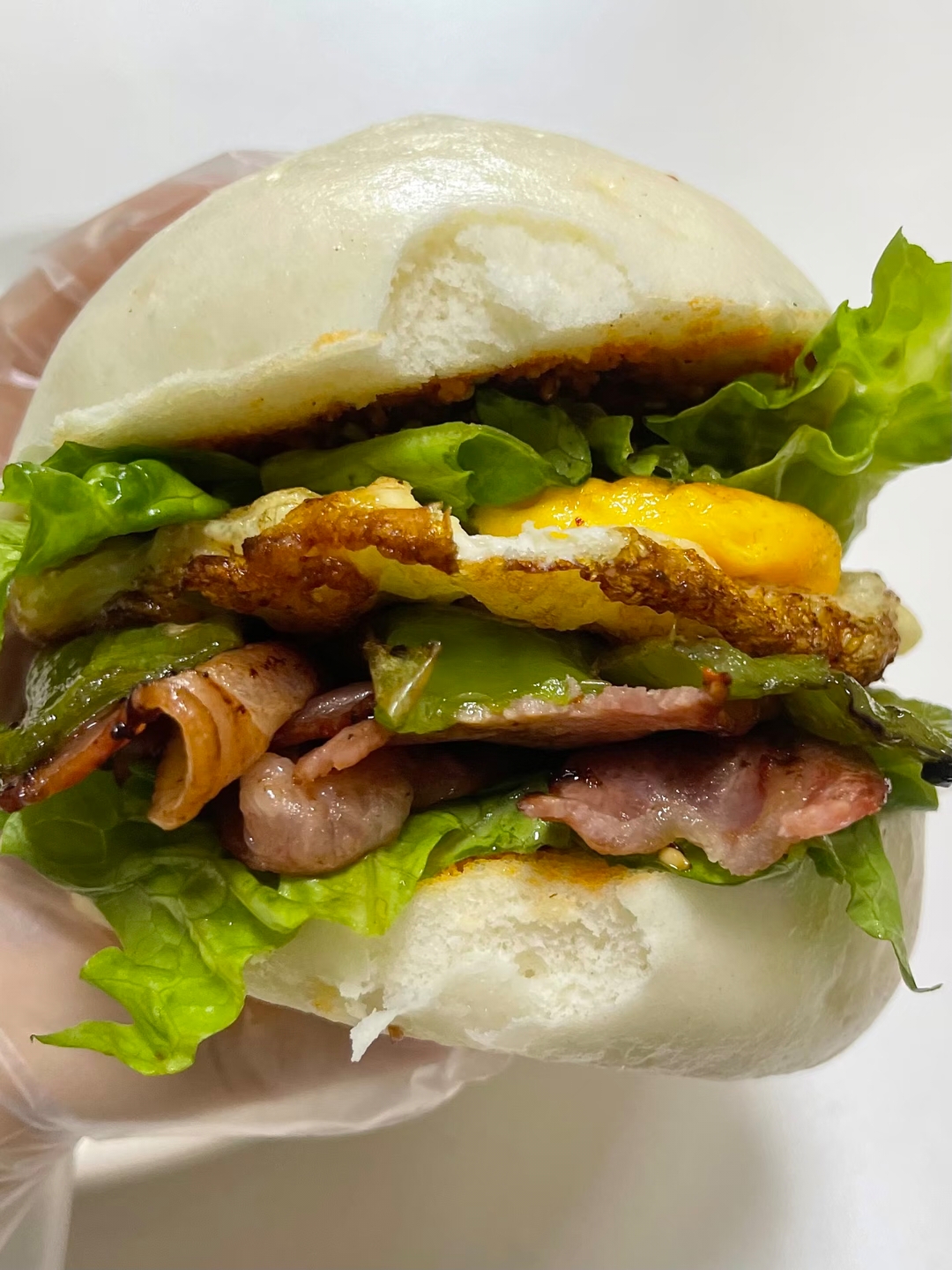 "叮——"微波炉加热馒头的提示音响起,我像拆盲盒似的掀开盖子,白胖胖的馒头瞬间膨胀成圆滚滚的云朵。这枚热气腾腾的碳水炸弹,即将开启它的变形记——成为专属于中国人的"汉堡"。