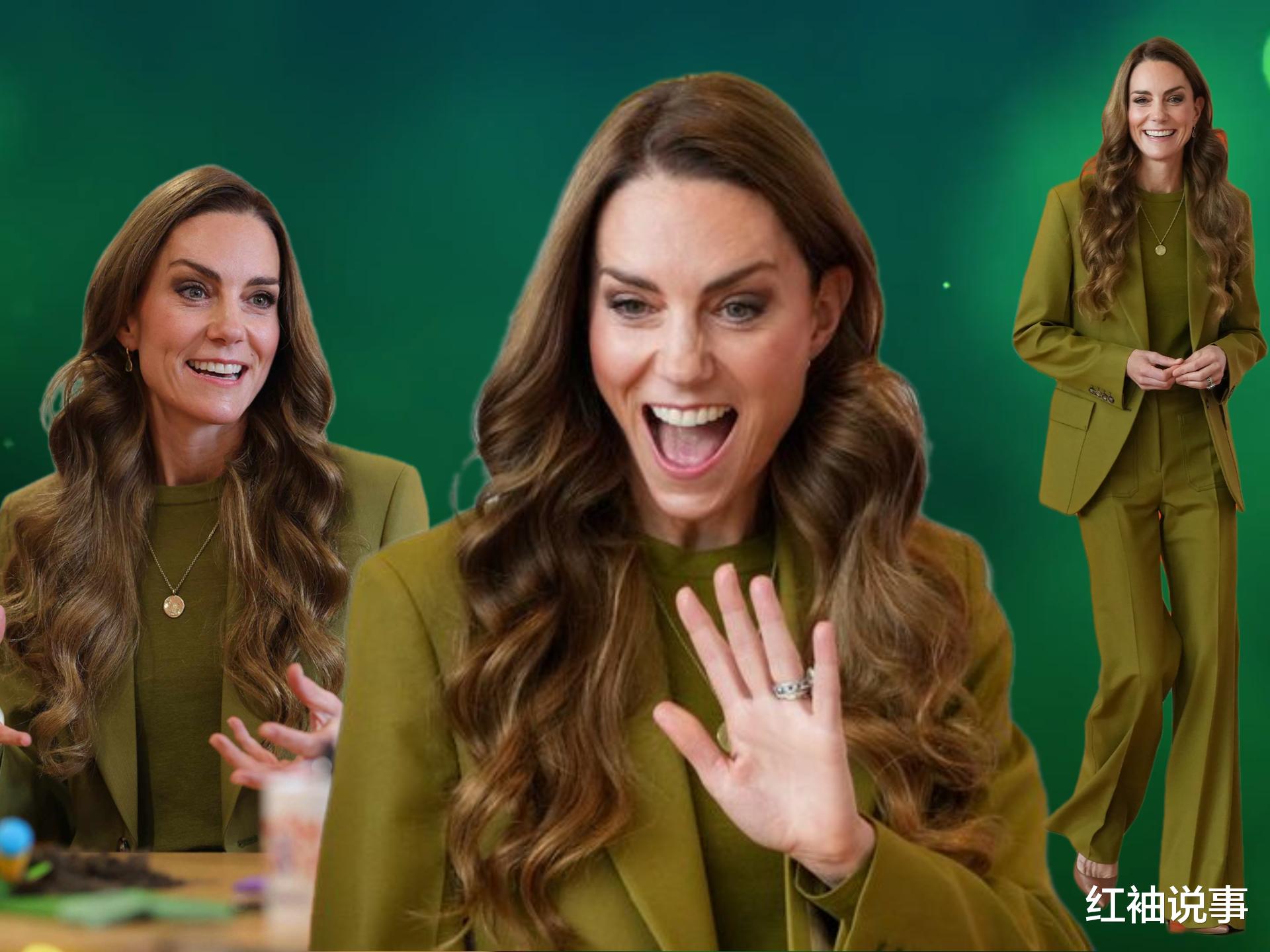 凯特王妃最新造型,橄榄绿套装清新脱俗,颜值重回巅峰时期