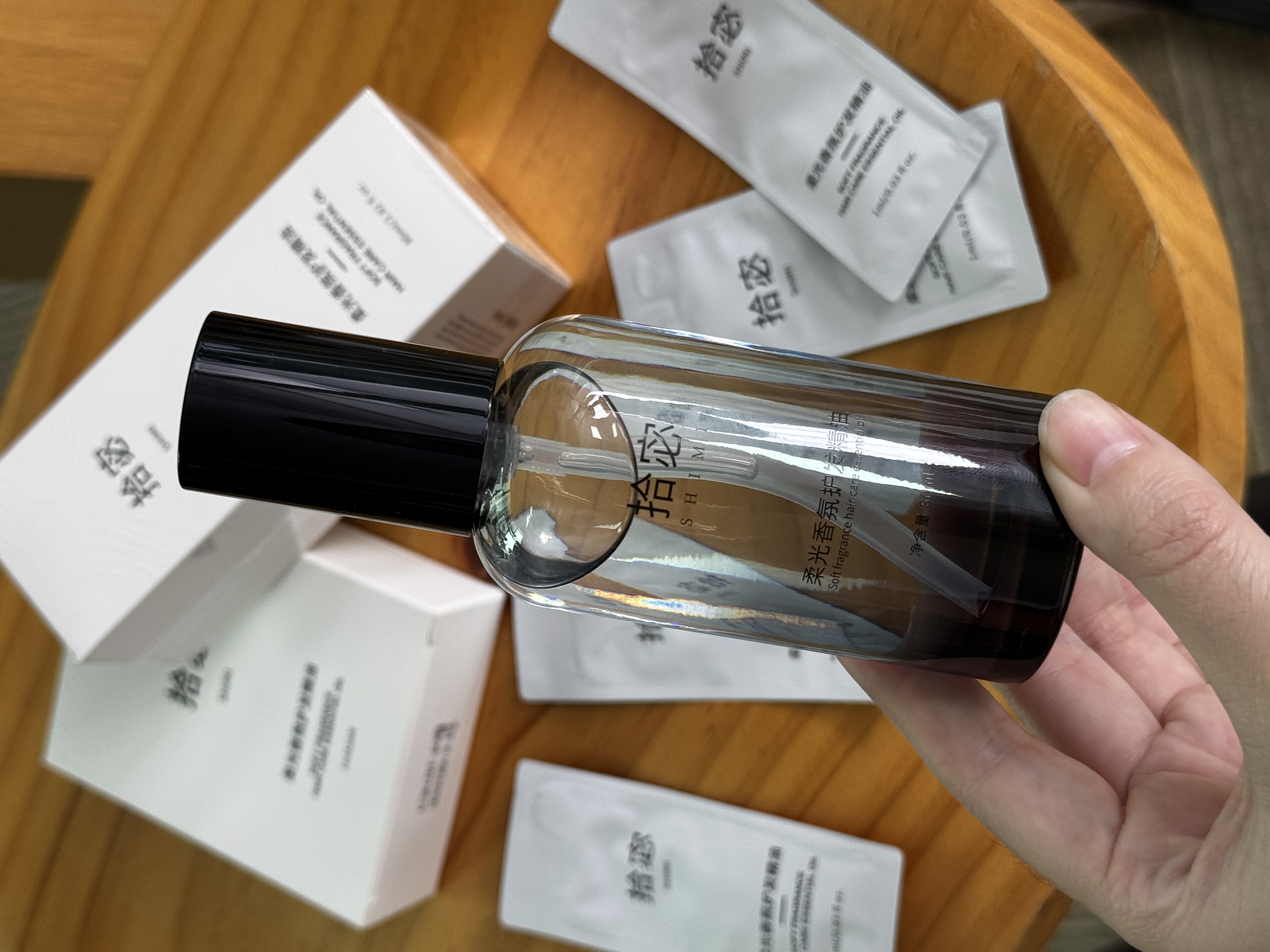香氛整体尚可,浓度偏高但不呛人,前调甜美,中后调渐入木质花香,我觉得它用了香氛微囊渗透技术,香气能在发丝间缓慢释放,动作轻轻晃发时,香味像层层波纹般散开,挺像喷了淡香水的错觉。