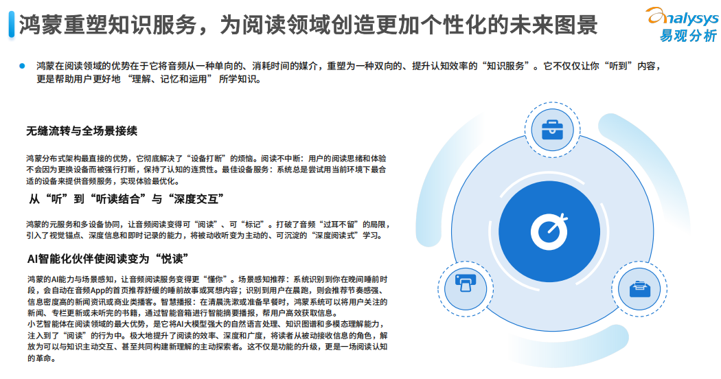 根据《报告》显示,鸿蒙在阅读领域的优势在于它将一种单项的、消耗时间的媒介,重塑为一种双向的、提升认知效率的“知识服务。未来,将有更多像老王那样的大龄程序猿投身进来,他们利用自己丰富的开发经验,结合鸿蒙系统全场景优势特性,不断重塑个性化APP服务的边界,终将迎来属于自己的商业成功。