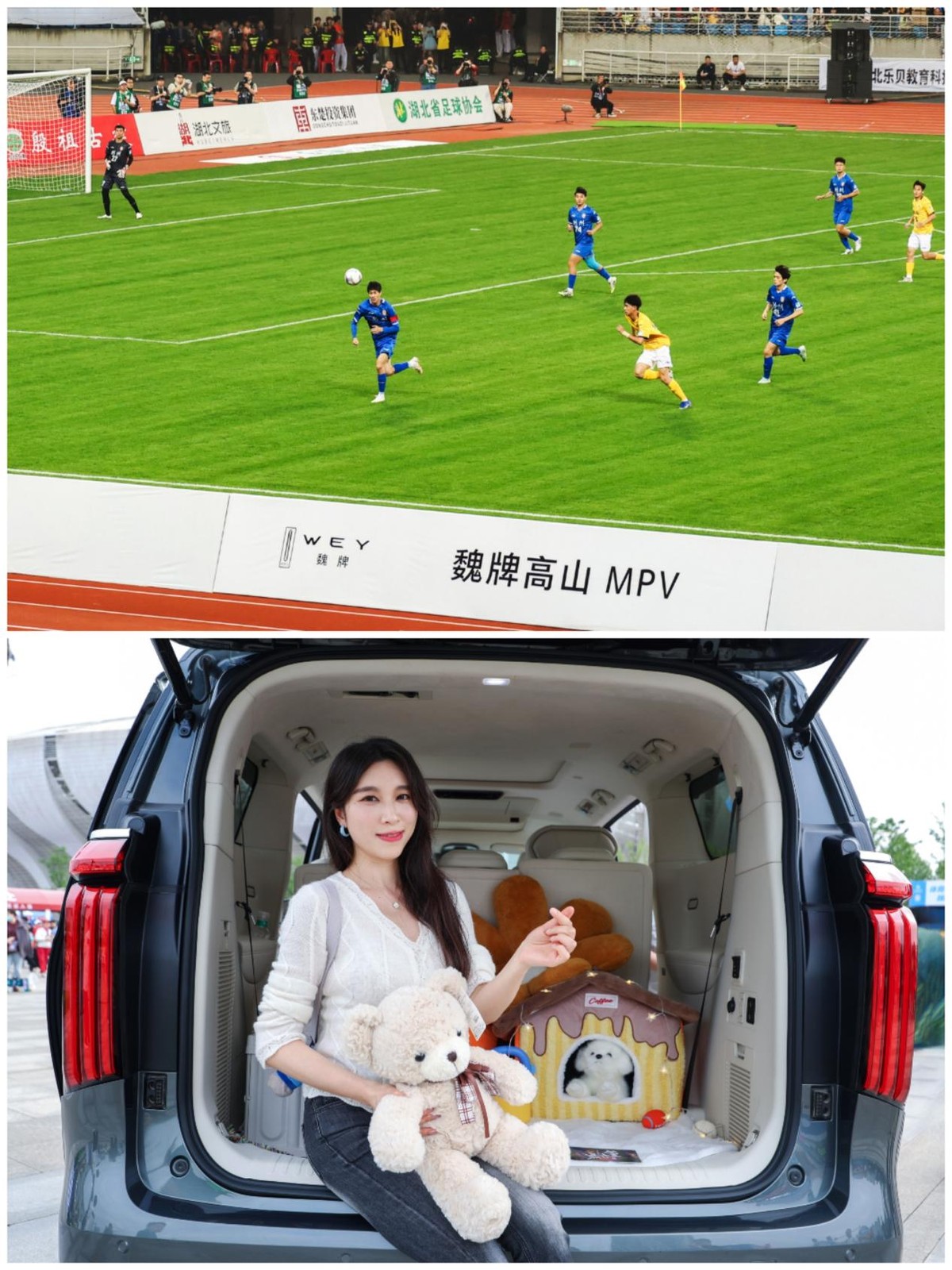 同一天晚上,魏牌高山作为楚超联赛官方合作伙伴亮相揭幕战。从奥体中心大屏到观众席Tifo,从后备箱市集到黄石队球衣,品牌元素贯穿全场,而是借全民赛事让这款冠军产品走进更多家庭的视野。现场有车主主动当起讲解员,向围观人群分享用车感受,一句句“坐着宽敞”、“老人说很舒服”,比任何广告都深入人心。