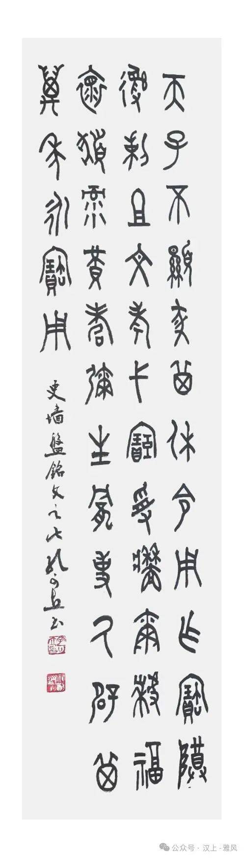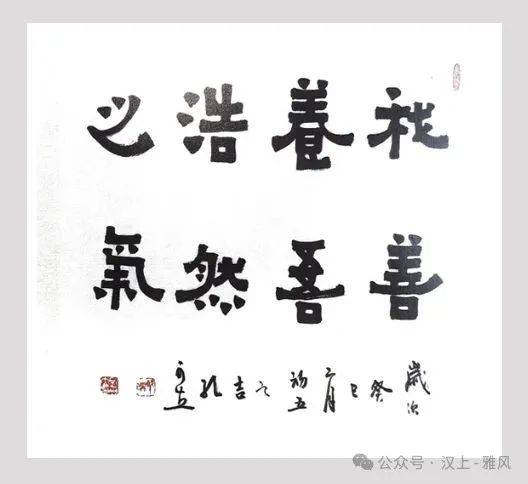 论及艺术成就,孔老师早已走出了独属于自己的艺术路径。观其书作,初感有金文的沉雄(金气)、隶书的宽博(土气);细品则见行草的灵动(木气),笔画间似含千钧之力(火气),结体又藏巧思(水气)。既深植传统根脉,又绽放创新之花,业内皆言其字“独成一格”,熟稔者更亲切称之为“孔体”。这并非刻意标榜,实乃他数十年浸淫笔墨、熔铸前人精髓后的必然结果。