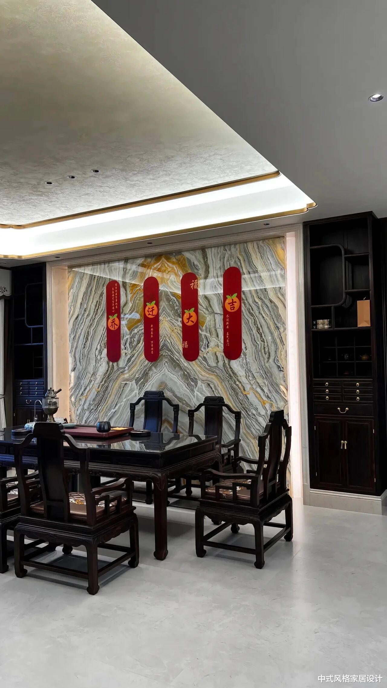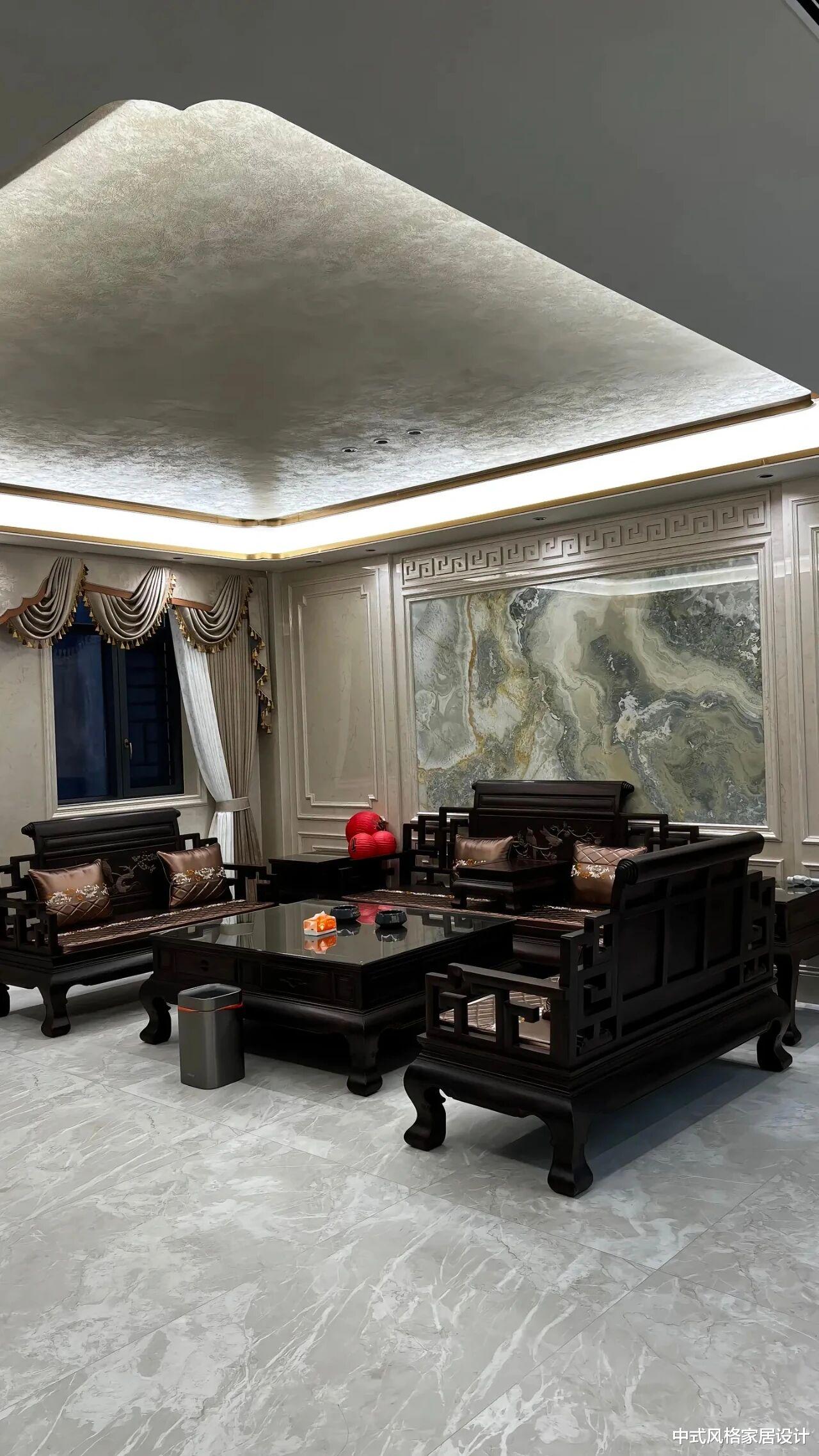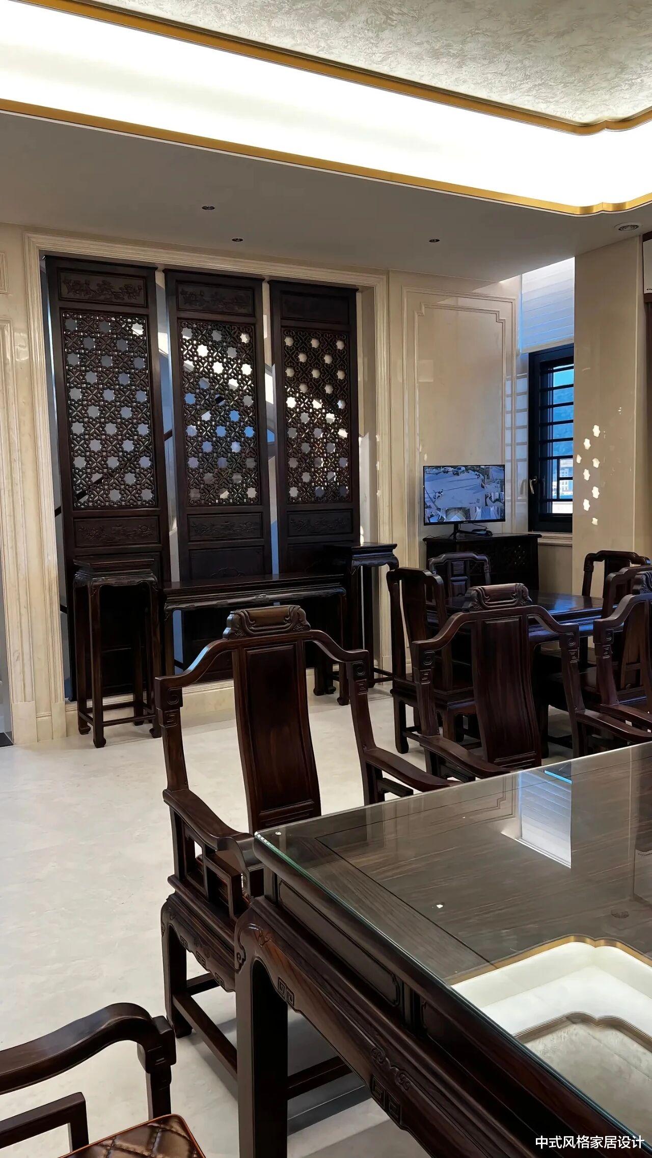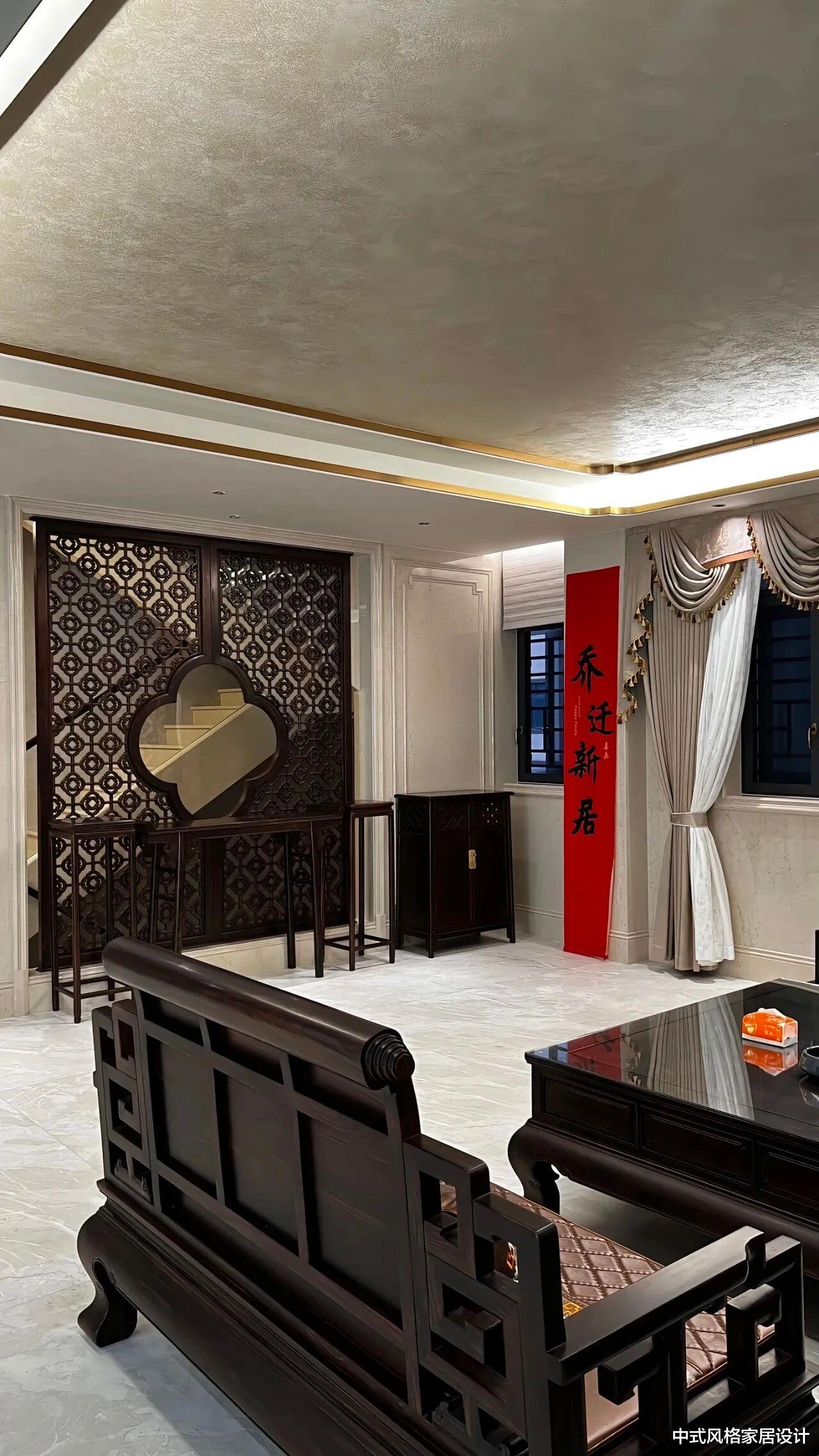 二、为何独爱中式风格?红木家具的“真材实料”哲学走进潮汕别墅,常可见到飞檐翘角、雕花门窗的中式元素,与北方中式风格的庄重对称不同,潮汕中式装修更注重精致繁复与吉祥寓意:1. 融合岭南灵巧与商贾审美潮汕中式风格善于运用木雕、石雕、壁画等工艺,在门楣、窗棂上刻画“麒麟送子”“松鹤延年”等图案,既保留传统中式的典雅,又增添一丝岭南建筑的灵动。而北方中式风格更强调大气恢弘,如北京四合院的规整布局、深色梁柱的厚重感。