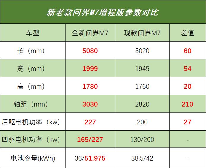 双电机版本前后电机峰值功率分别为160/227千瓦;增程版本的四驱版本前电机功率大了5千瓦,后电机也是227千瓦。另外,新M7增程版的发动机型号为HG15T,最大功率118千瓦,和问界M8采用的是同款发动机。