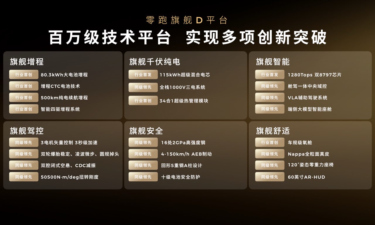 零跑汽车创始人、董事长兼CEO朱江明在现场介绍,零跑旗舰D平台是零跑最先进技术水平的集中展现,是零跑十年交出的一份最真诚的技术价值答卷。
