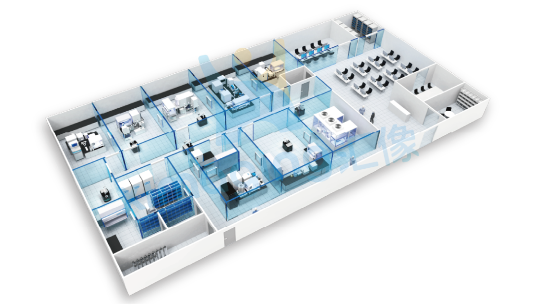 该自动化实验室1000多平,以汇像科技云端中控引擎系统为核心,实现了8个自动化功能岛,100+仪器设备的实验室自动化,可以实现血液、组织、唾液等样品的前处理、细胞的传代培养、化合物高通量筛选、细胞的染色成像、NGS建库和测序等实验流程;最大限度地降低样品处理错误的风险,提高实验的一致性和可靠性,从而实现更高效的研发进程。