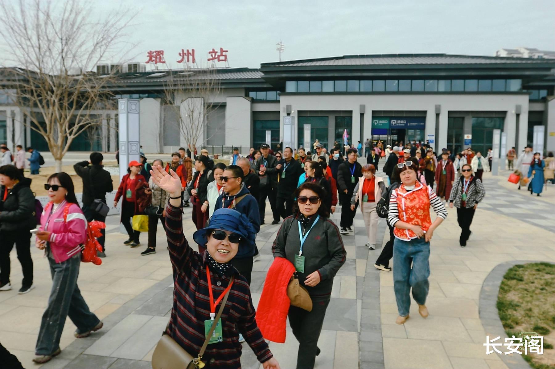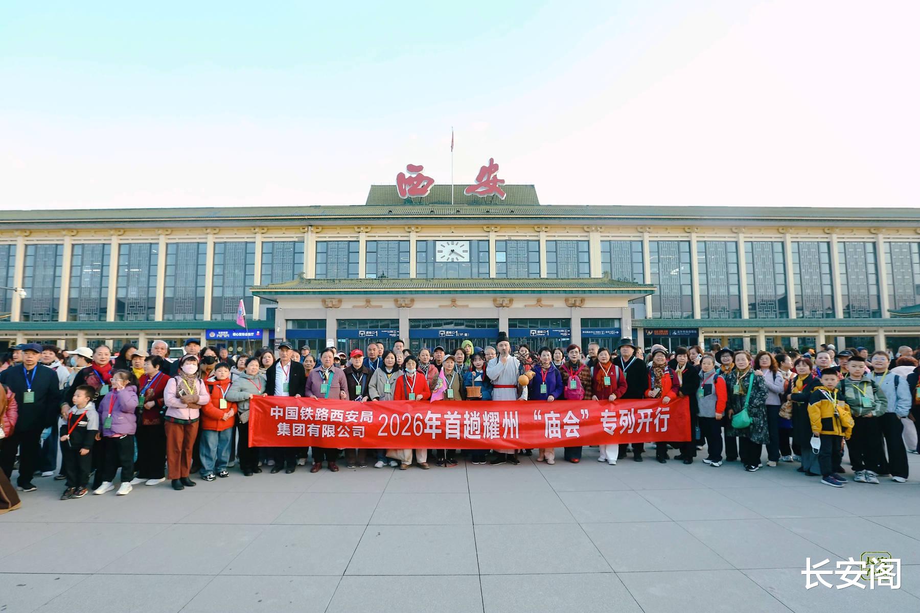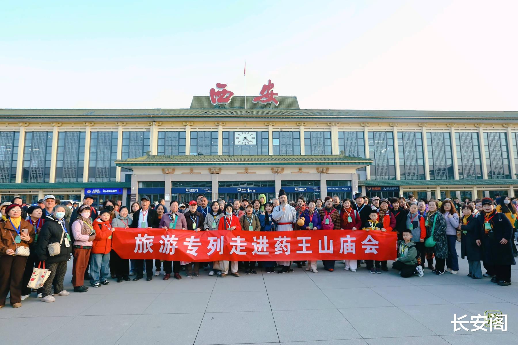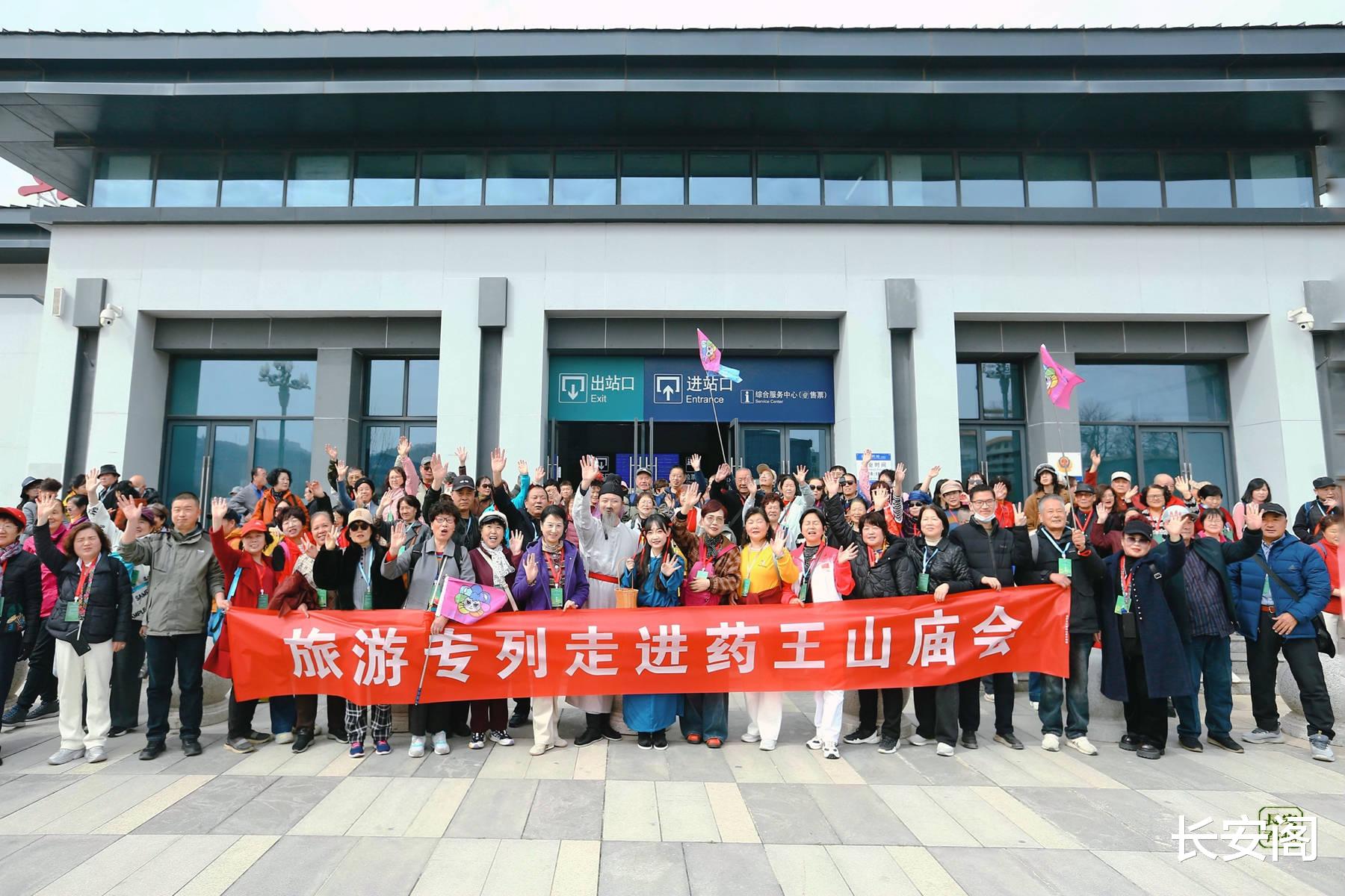 上午11时许,专列缓缓停靠耀州站。站台上,“热烈欢迎‘药王山庙会文化旅游专列’游客”的横幅格外醒目,工作人员引导游客有序下车。志愿者举着引导牌,热情地指引大家乘坐接驳公交前往药王山景区。全体游客在站台与特型演员、欢迎横幅合影,记录下“登陆铜川”的珍贵瞬间。