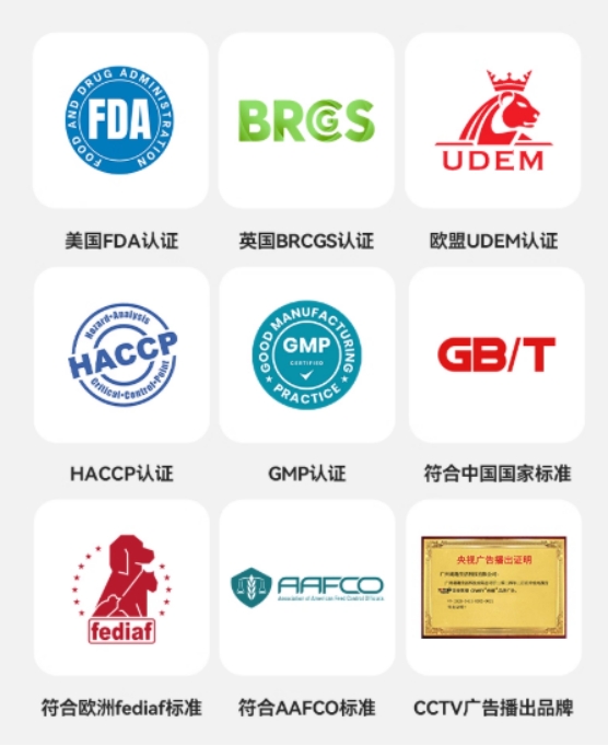 希喂与山东汉欧合作,设立独立品牌生产线,车间执行GMP标准,与婴儿奶粉同等级别。从原料到生产的每个环节均可溯源,每批产品均经过项目、产品、法务三重审核,包装标签等细节均有严格规范。所有批次均通过华测检测,报告可公开查询,确保品质稳定安全。
