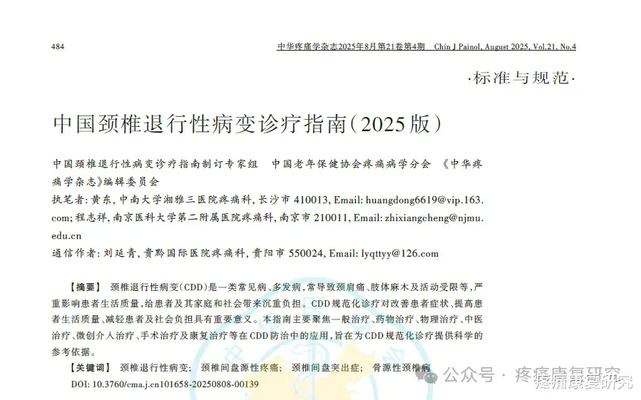 参考文献:中国颈椎退行性病变诊疗指南制订专家组, 等. 中国颈椎退行性病变诊疗指南(2025版)[J]. 中华疼痛学杂志,2025, 21(4): 484-499.