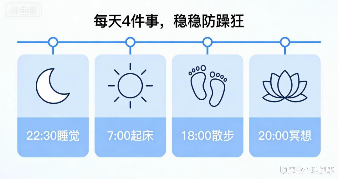 很多人以为躁狂是“随机发作”,其实它高度可防、可控。临床中发现,80%以上的躁狂复发,都有明确诱因。今天这篇文章,给你一份完整、可落地、能直接照着做的防躁狂指南,长期坚持,能显著减少发作频率,让生活回归稳定。