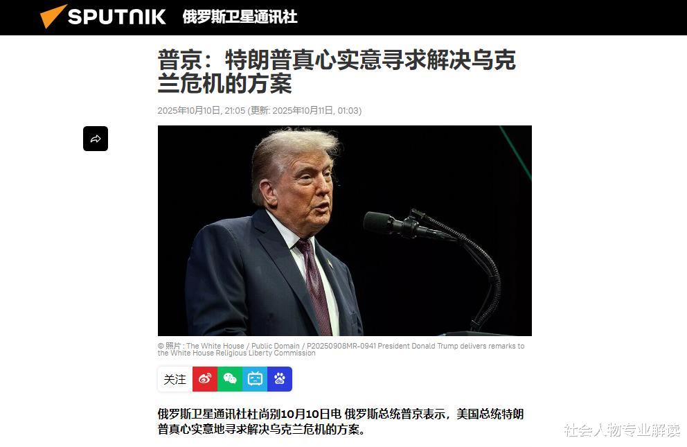 10月11日,据俄罗斯卫星通讯社报道,大帝在对塔吉克斯坦国事访问结束后,专门召开了新闻发布会,虽然是访问别的国家,但是他专门提到俄乌冲突,特别强调称:“美总统特朗普是真心实意地寻求解决俄乌冲突的方案,我能感受到,全世界也都看到了。”
