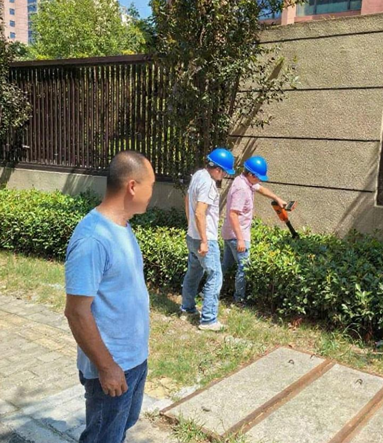 由于电缆敷设时间较长,工作人员对电缆路径不是很熟悉,因此必须进行路径查找,使用i5000-3电缆路径仪,在近端红夹子夹线芯,黑夹子接地,末端对应线芯接地,采用8.19kHz频率。