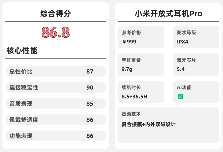十大口碑最好的开放式耳机推荐八:小 米开放式耳机Pro ¥999元