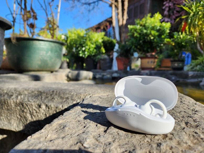 音质方面,采用了振膜直传+导音结构的混合音频传导方式,虽说不是真正意义上的骨传导,但在听感上呈现出接近骨传导的指向性声场。人声部分尤为突出,中频段饱满清晰,在高频部分的细节表现不是很足,解析力有限,音乐的层次感不够丰富。防漏音的控制还算不错,日常使用不会有太明显的漏音。
