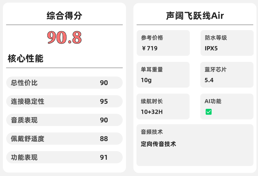 十大口碑最好的开放式耳机推荐六:声 阔飞跃线Air ¥719元