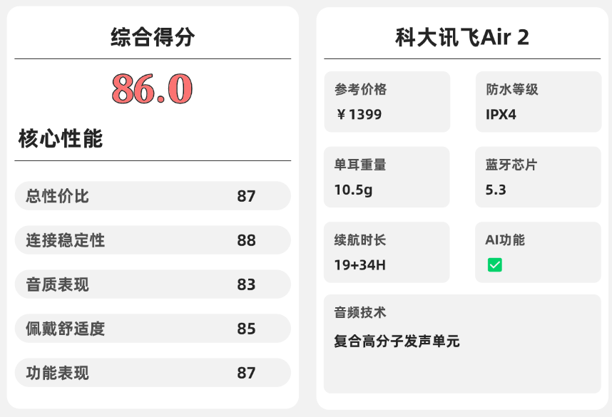 十大口碑最好的开放式耳机推荐七:科 大讯飞Air 2 ¥1349元
