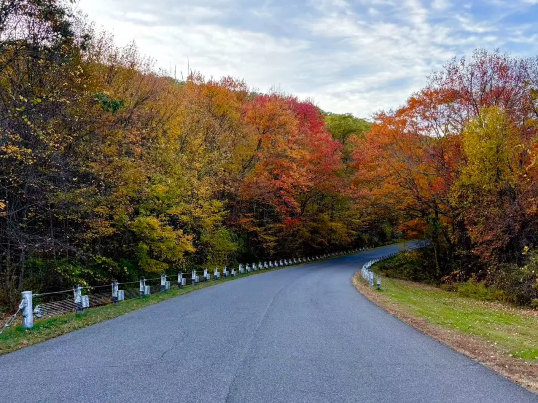 道路两旁,红叶如火,层层叠叠,将整个景区装点得如诗如画。