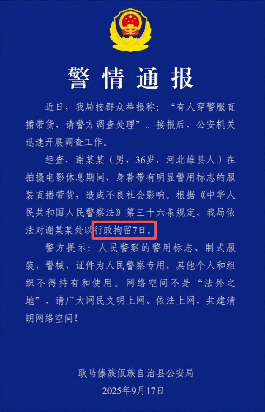 云南“帽子叔叔”官方发出了一条通告,根据原则谢孟伟确实违规了,所以把他抓进去关7天。