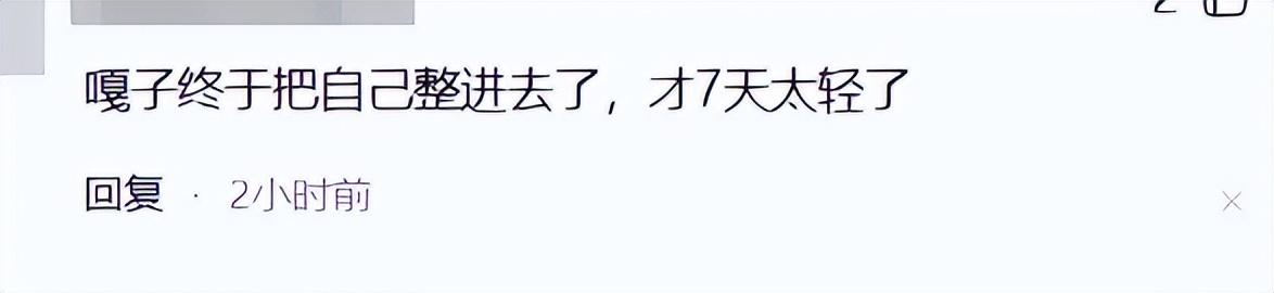 只能说真是该,网上的评论也都是嘲笑他的言论,甚至还有人说才付出了7天的代价太轻了。