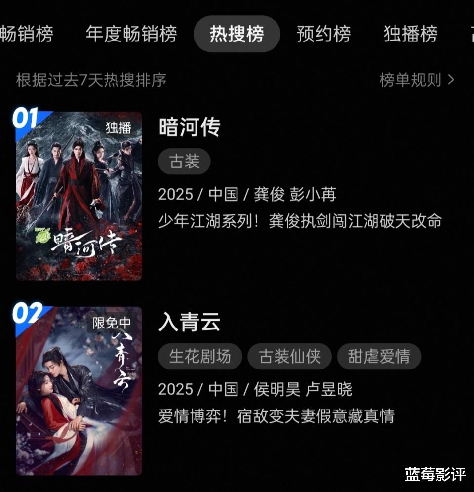 该剧仅仅播出1天,便力压连日霸榜的《入青云》,直接冲上裤厂平台热搜榜第一。