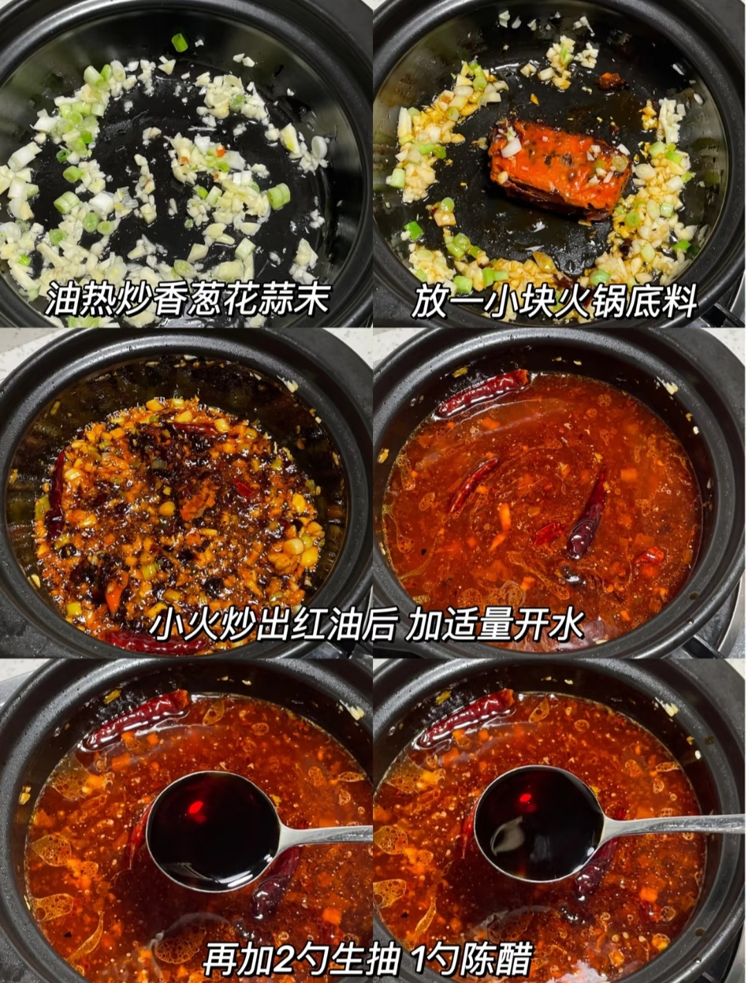红油炒好后,直接加开水!注意必须是开水,冷水会让香味"收缩",就像给热情浇了盆凉水。水量看你家砂锅大小,一般加到七分满。