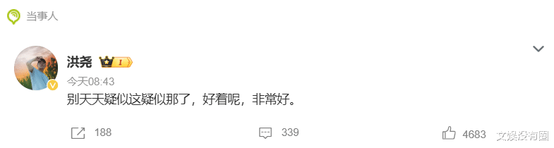 洪尧回应删除和吴谨言官宣结婚的微博,直言“好着呢”,网友调侃:要接综艺了?