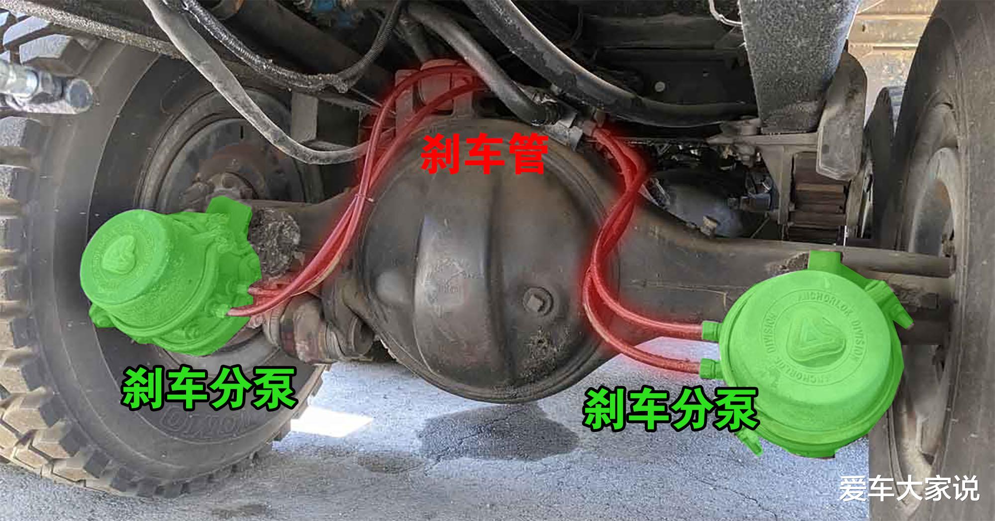 如果你留意观察的话就会发现,公交车和大货车轮子旁边都有一个圆鼓鼓的装置,这是刹车分泵,里面有活塞,靠压缩空气驱动,负责控制刹车。而断气刹的奥秘就在这个分泵里面。