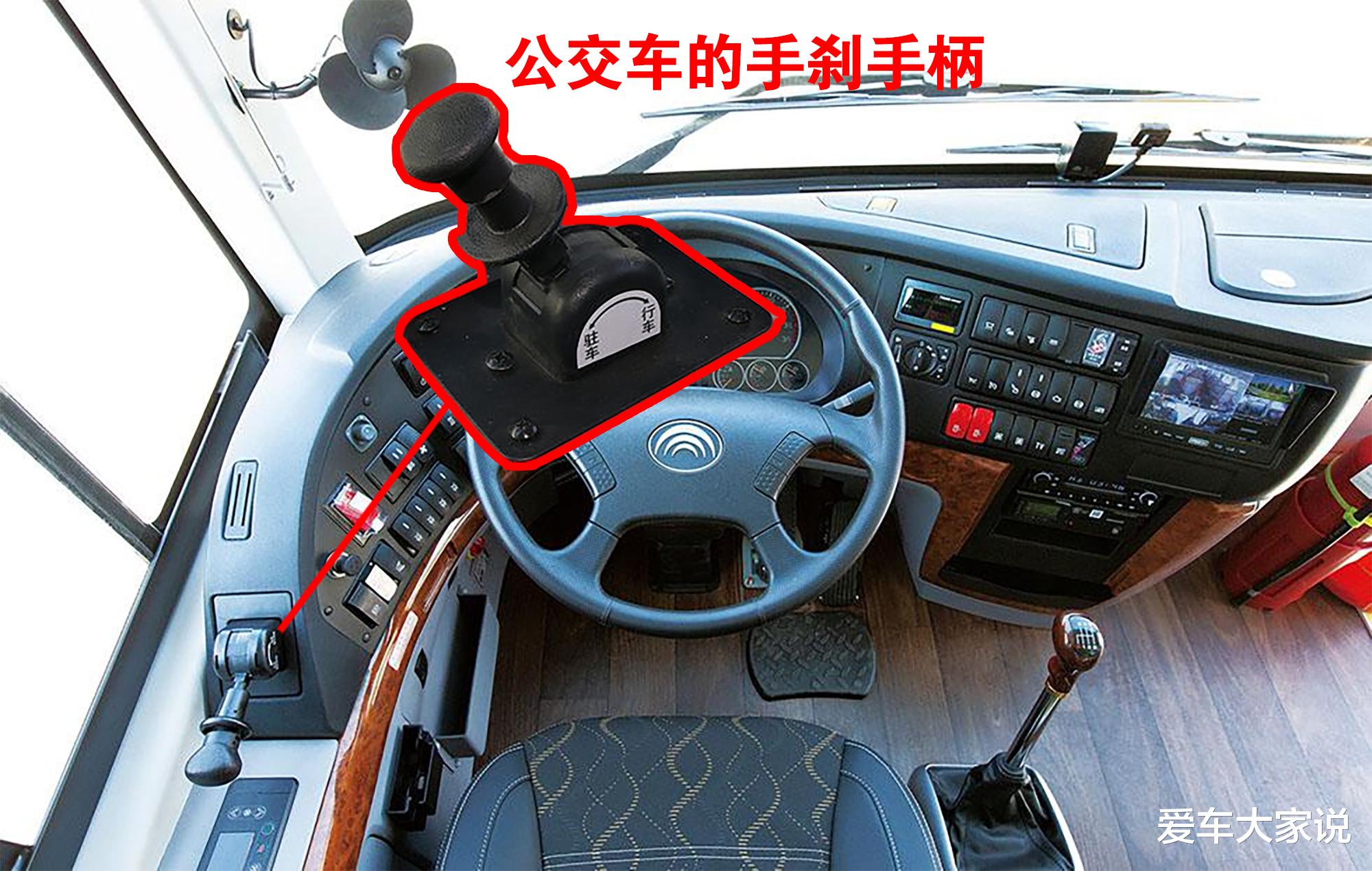 因为公交车自重好几吨,停车时手刹得提供非常大的制动力才能保证不溜车,单凭手拉根本提供不了那么大的力量。所以公交车用的是另一种特殊的手刹:断气刹。