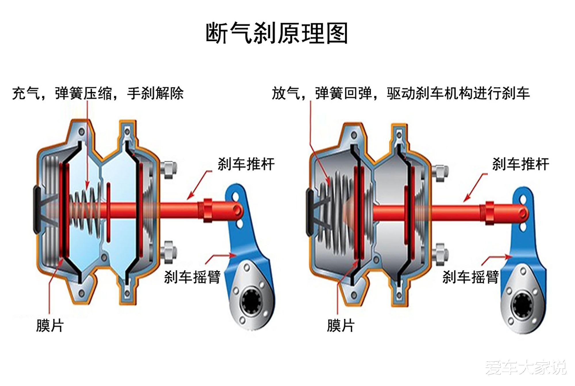 有人可能好奇:为什么反复拉手刹汽车却不会刹停呢?其实原理非常简单:司机拨动手刹阀门的力度很小、速度很快,拉手刹的时候分泵里的气体刚释放一丁点就立马就又接通高压空气了,所以弹簧一直没办法完全释放,也就不会刹停了。
